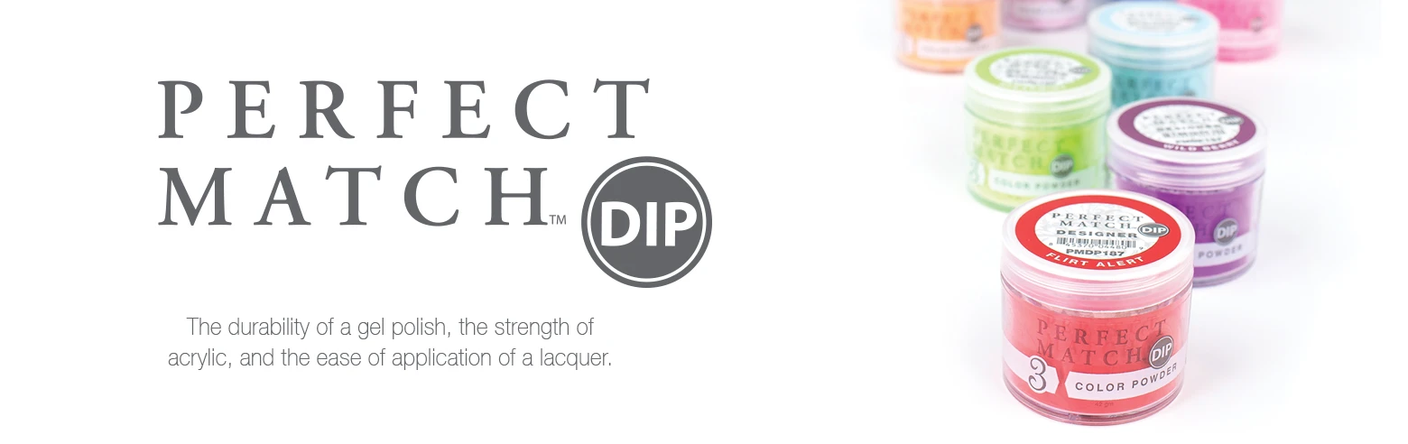 Perfect Match Dip Powder combines the durability of a gel polish, the strength of acrylic nails, and the ease of application of a lacquer to create stronger, longer nails with maximum shine.